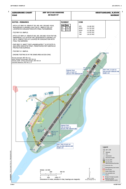 Magnetic variation is 2.6° East View others Airports in Vest-Agder